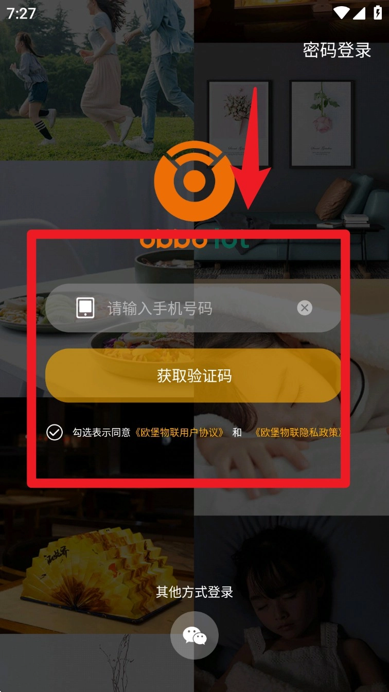 1. 开启App,进入登录界面,输入手机号码,勾选协议,点击「获取验证码」以完成快捷登录。