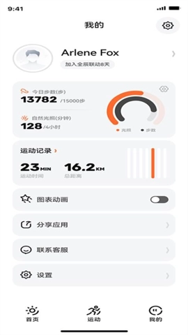 1、借助图表动画功能,用户能够以生动的图表形式,查看自身运动数据以及户外光照强度的变化情况。
