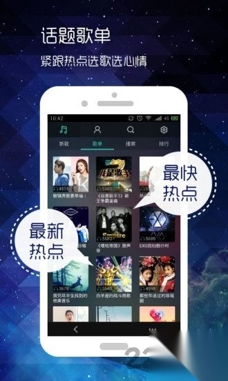 1用户只要在搜索栏输入相关关键词,就能迅速找到心仪歌曲,并且更新十分及时。