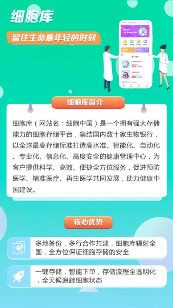 细胞库作为一款专注于生命健康管理领域的细胞存储服务平台,融合了生物存储、健康科普以及信息查询等诸多功能。它借助数字化管理手段与标准化流程,致力于增强个体健康预警能力以及再生医学的应用能力。在该平台上,用户能够在线获取干细胞相关知识,预约采集服务,还能绑定存储计划。