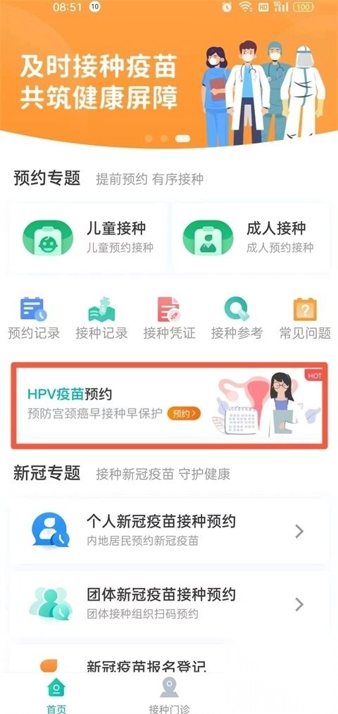 2、填写完成之后就可以返回首页点击hpv疫苗预约