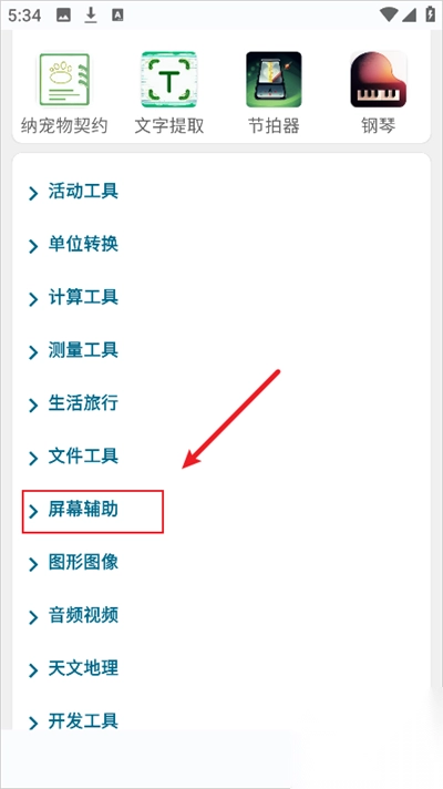 1. 打开实用百宝工具箱,点击界面底部的“屏幕辅助”模块,进入辅助功能页面。
