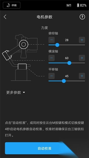 借助自动校准功能,Ronin app 能够依据实际负载情况自动对电机参数进行调整。基于自动校准所得到的参数,还能够进一步对力度、强度、超前控制以及滤波参数展开调整。