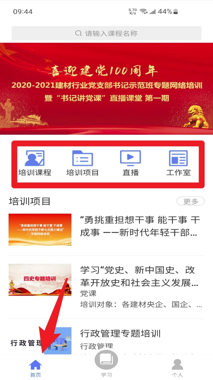 1. 在首页点击「培训课程」或「培训项目」,可浏览当前热门课程与专题培训内容,支持点击查看课程详情并直接报名。