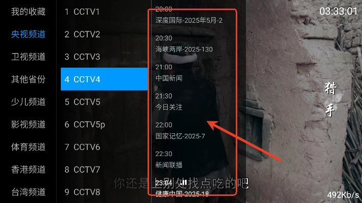 2、点击屏幕,左侧频道栏可以切换喜欢的频道