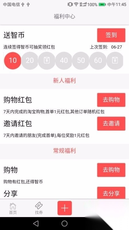 签到功能,每天参与签到即可领取智币奖励,使用智币即可进行抽奖领红包;