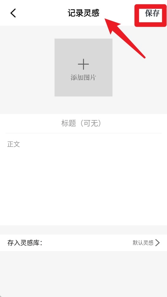 2. 轻点记录灵感页面,就能添加图片以及文字笔记,接着为其命名并保存至特定的灵感库,以便后续查看与使用。