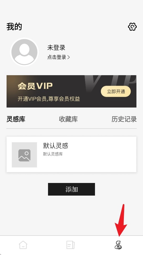 4、点击“我的”进入个人中心,可查看默认灵感库、收藏记录和历史操作,支持开通VIP享更多权益。