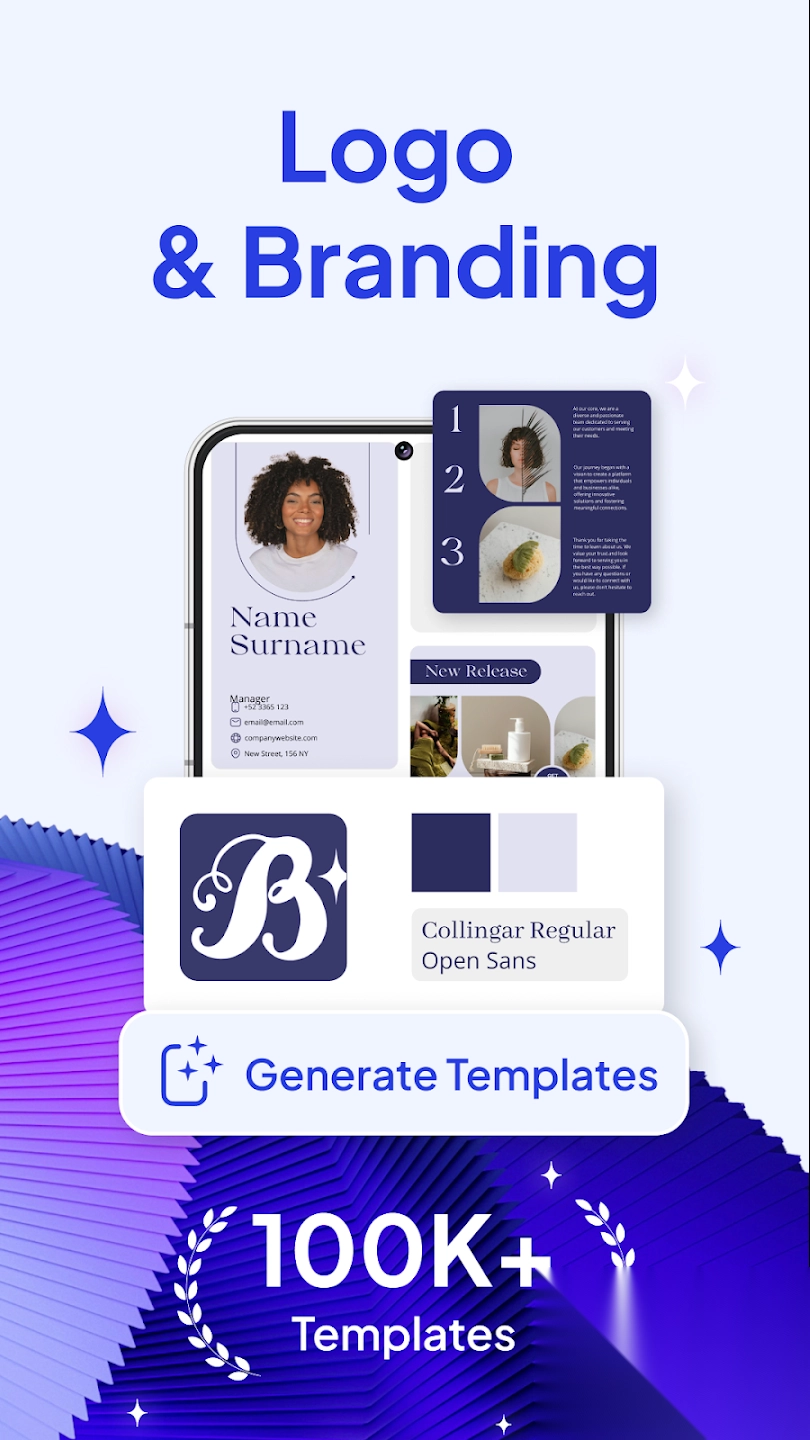 即时打造徽标与品牌:迅速设计出专业级品牌徽标,借助智能色彩组合、精选图标以及丰富多样的字体,毫不费力地搭建起您的品牌视觉资源库。