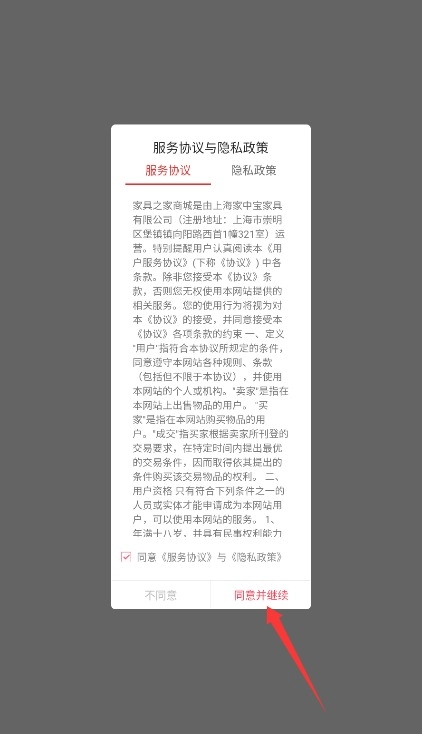 1、初次使用需完整阅读并确认用户协议与隐私条款,点击"同意并继续"按钮进入主界面。