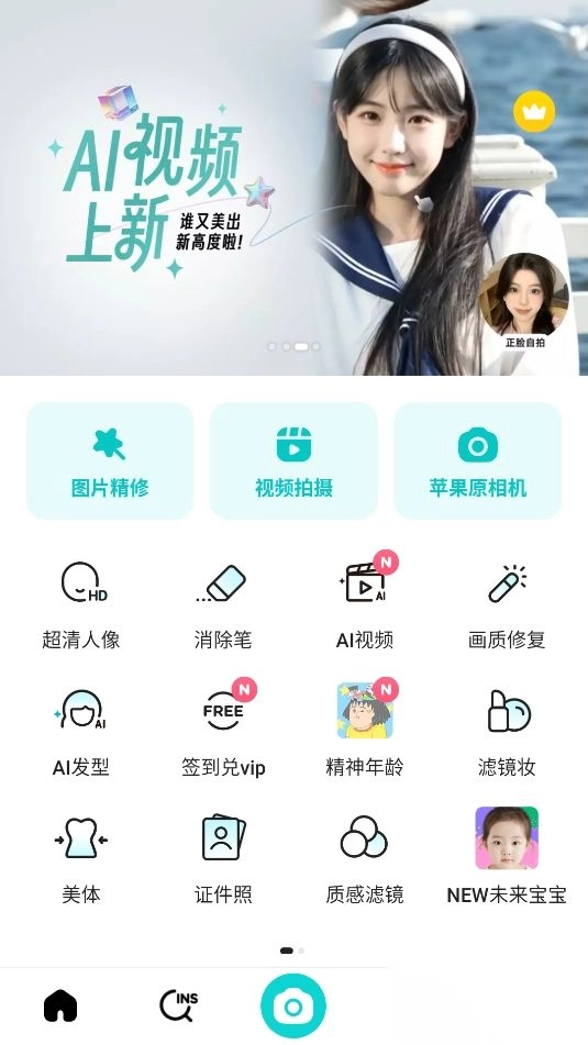 1. 在软件主页,你能够自由挑选多种修图与拍照功能。
