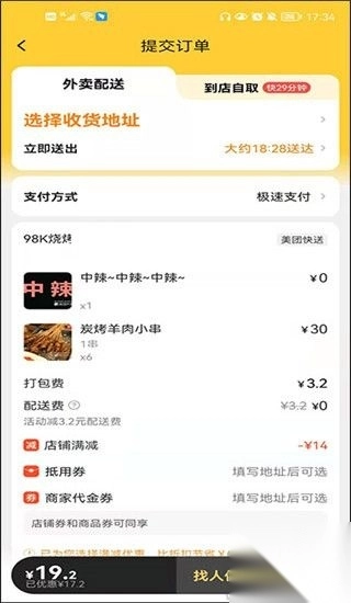 4、选完菜品后填写收货地址和联系电话,提交订单后等待外卖送达。
