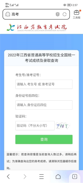 1. 打开软件,在其中输入“高考查询”,接着点击“在线查分”选项,从中任选其一进行查询。