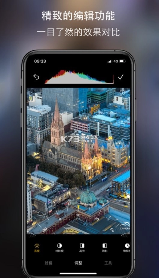 在智能相机app中,能够轻松调整亮度、高光、阴影、饱和度等各类数据参数,使用与调整过程都极为便捷直观地展现出来。