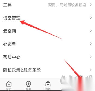 1、进入管理界面步骤如下:开启萤石云视频tvapp,轻点“我的”,接着点击设备管理,即可进入相应界面。