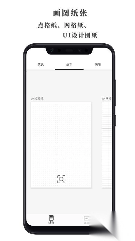 将纸张按照笔记、练字、画图来进行分类,可以分类选择自己需要的纸张;