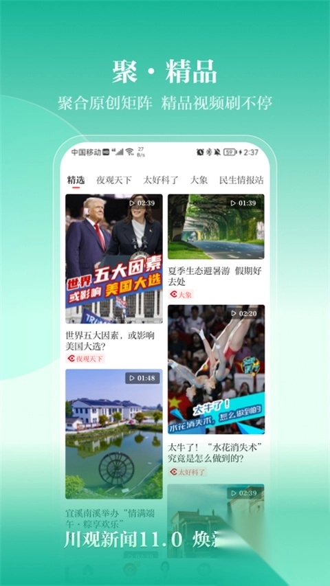 4、川观新闻整合党报强大采编力量,连接省内智库专家,为您提供最权威的品质新闻。大事看川观,掌握中心思想。