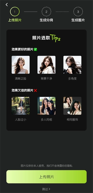 5.等待图片检测是否复合生成条件,如不符合请重新选择