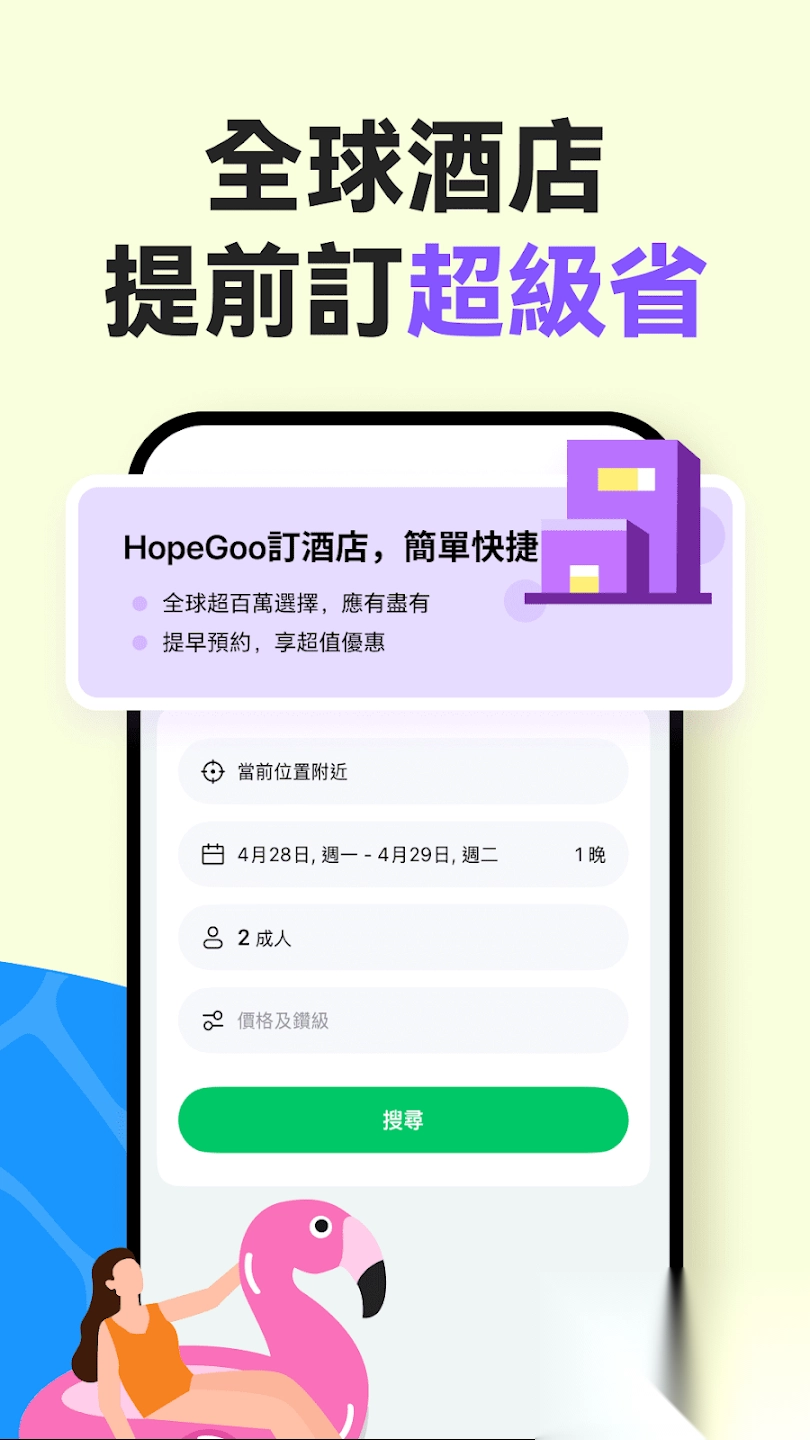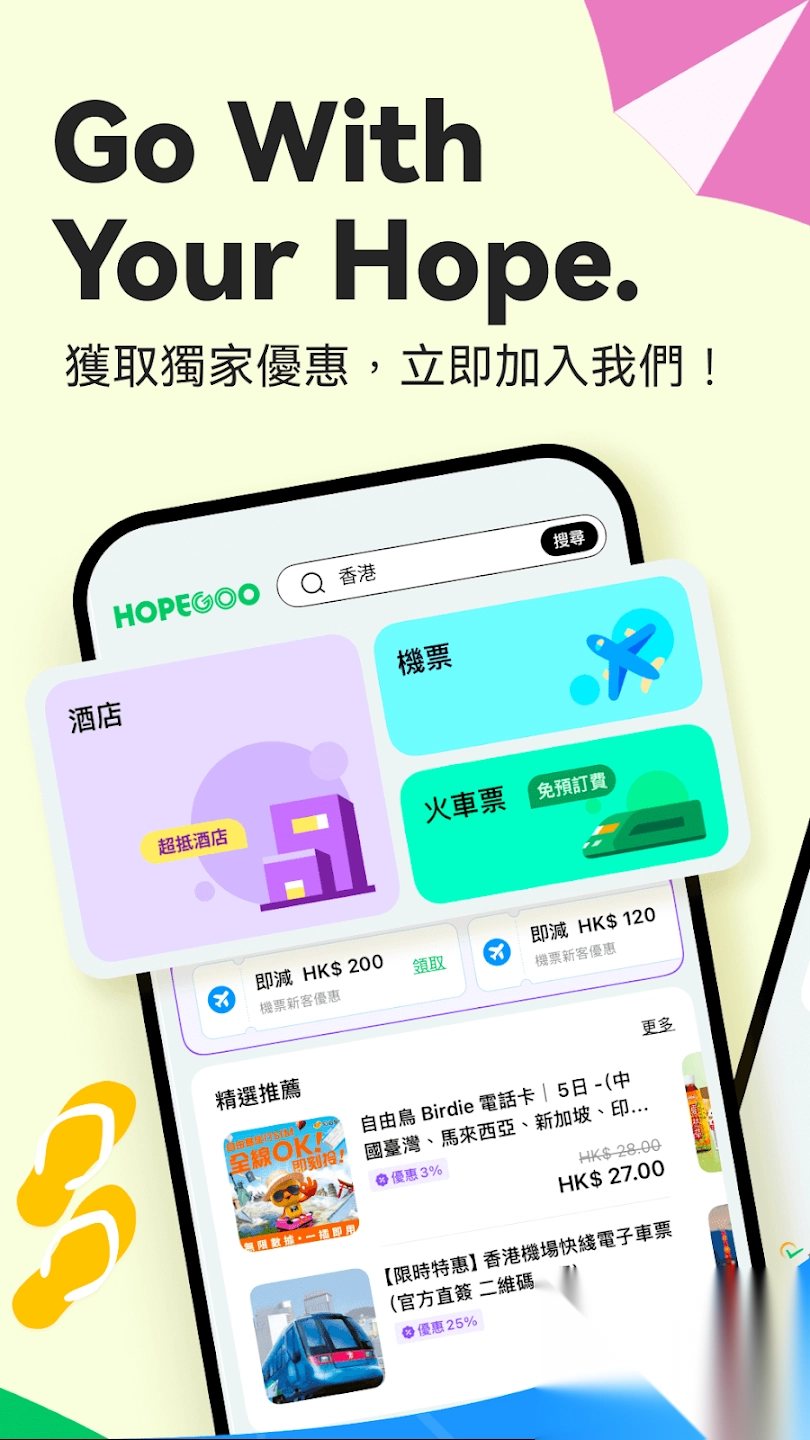 HopeGoo官方正版,助您轻松以超值优惠预订酒店、机票与火车票。国际航班价格超低,预订毫无压力。全球酒店海量任您挑选,预订便捷无比。预订内地火车票同样轻松。还能解锁最新优惠以及会员专属特惠,让您每一趟旅程都能省到极致!有需要的用户,赶快到本站下载吧。
