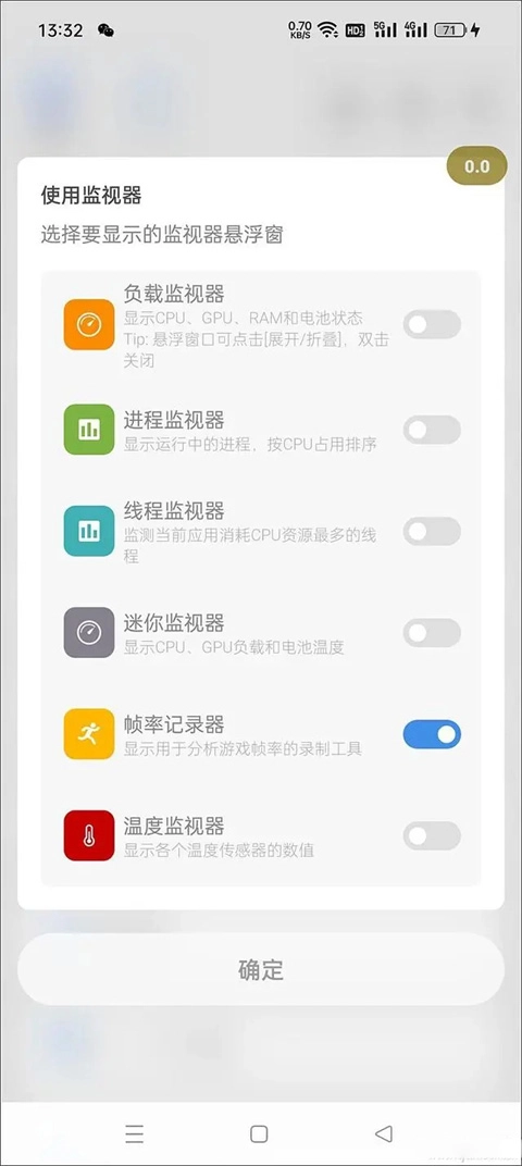 1、测帧率功能是需要使用adb模式的,不知道怎么激活的可以看上面教程,进入之后点击右上角的监视功能。