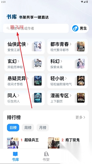 1、进入笔趣阁版app后,我们如图点击搜索栏;