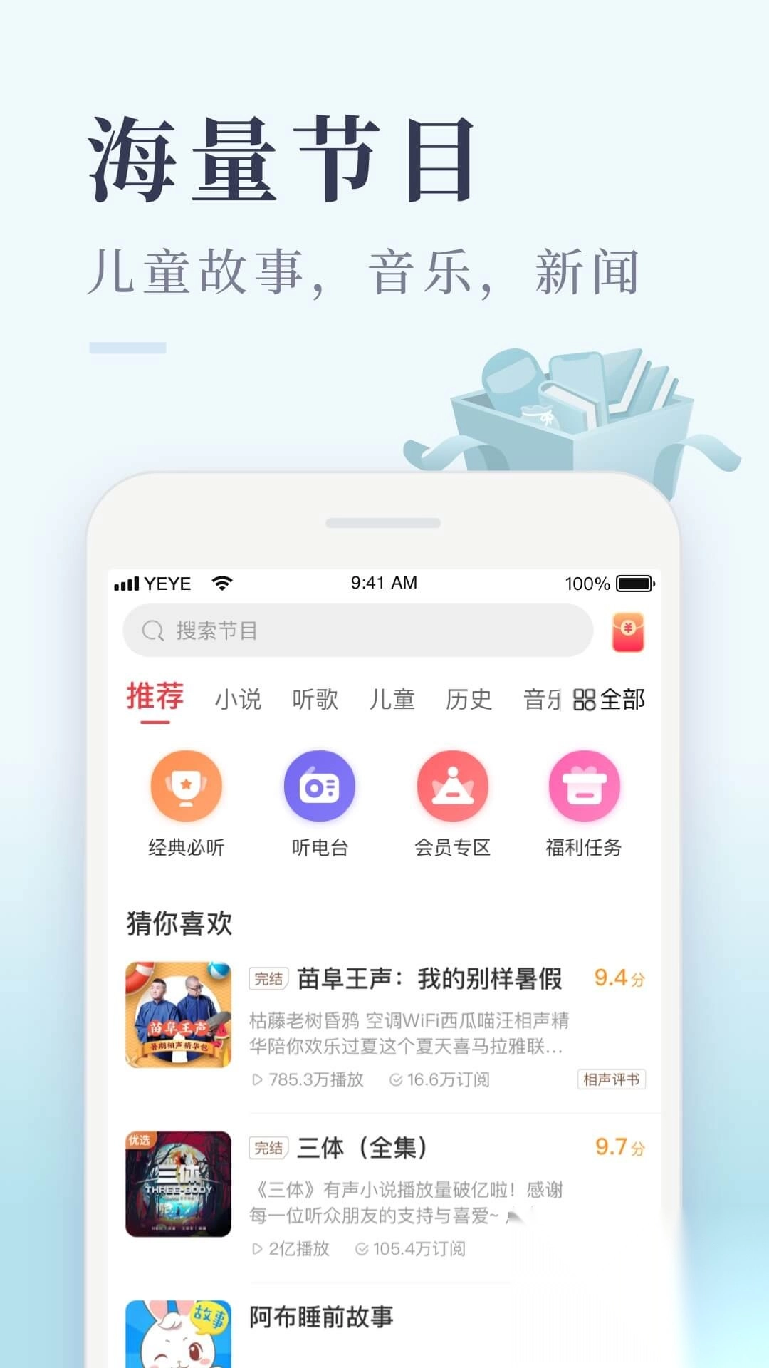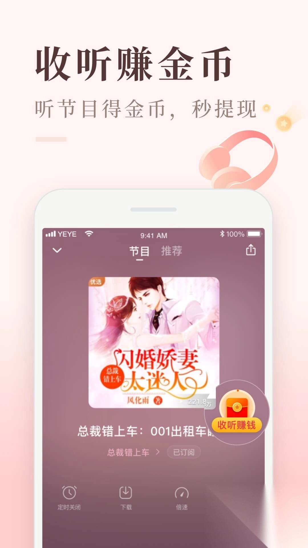 1、听节目赚现金,听得越多赚的越多,秒提现