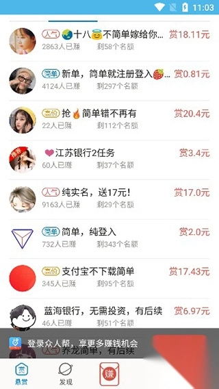 众人帮赚钱app的提现门槛非常低,消除了用户恶意提高门槛导致无法提现的顾虑。靠谱的任务、低门槛的提现,众人帮为兼职者提供了一个安全可靠的平台,无论你是寻找额外收入还是临时性工作机会,都能在这里找到合适的任务。每天上万个悬赏任务让你轻松赚够零花钱,任务类型多样化,包括调查问卷、图片、音频、文本提取等,让用户体验更多的赚钱乐趣。红包团、赏金券等创意丰富的玩法也为用户提供了更多的赚钱机会。想要的用户可以来本站下载,体验全新的兼职生活吧!