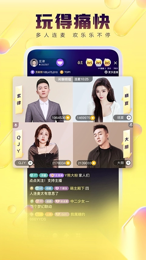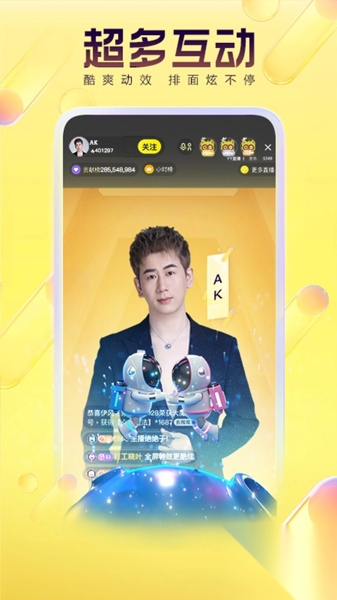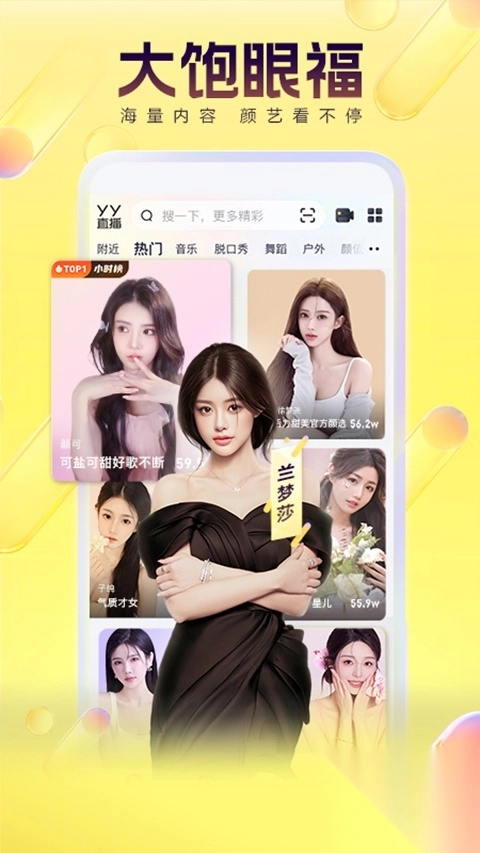 想体验超燃的直播盛宴吗?来YY直播,网红大咖齐聚,为你呈现全方位精彩。无论是活力四射的唱跳喊麦,刺激的户外探险,热血的体育竞技,专业的游戏解说,还是新时代的多元精彩,24小时超清直播不停歇,带你领略那些未曾知晓的缤纷生活。海量好看又好玩的直播内容,都在YY直播,千万别错过!