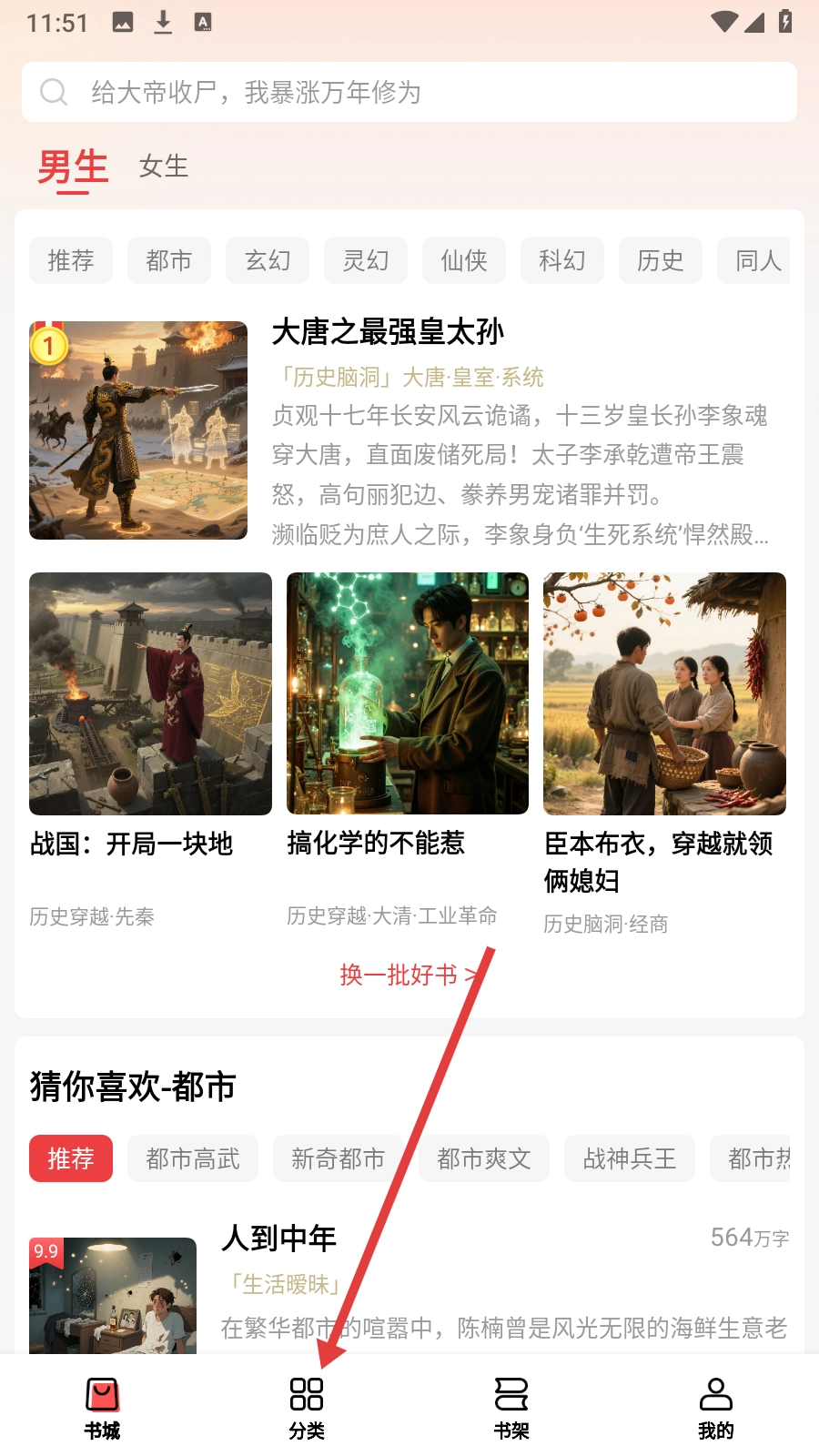 2、在分类页点击【感兴趣小说】,进入小说详情页。
