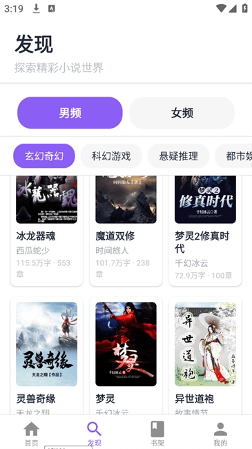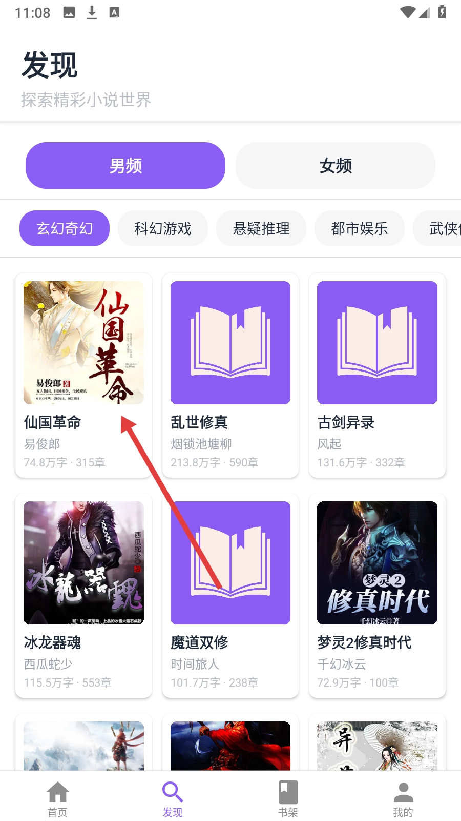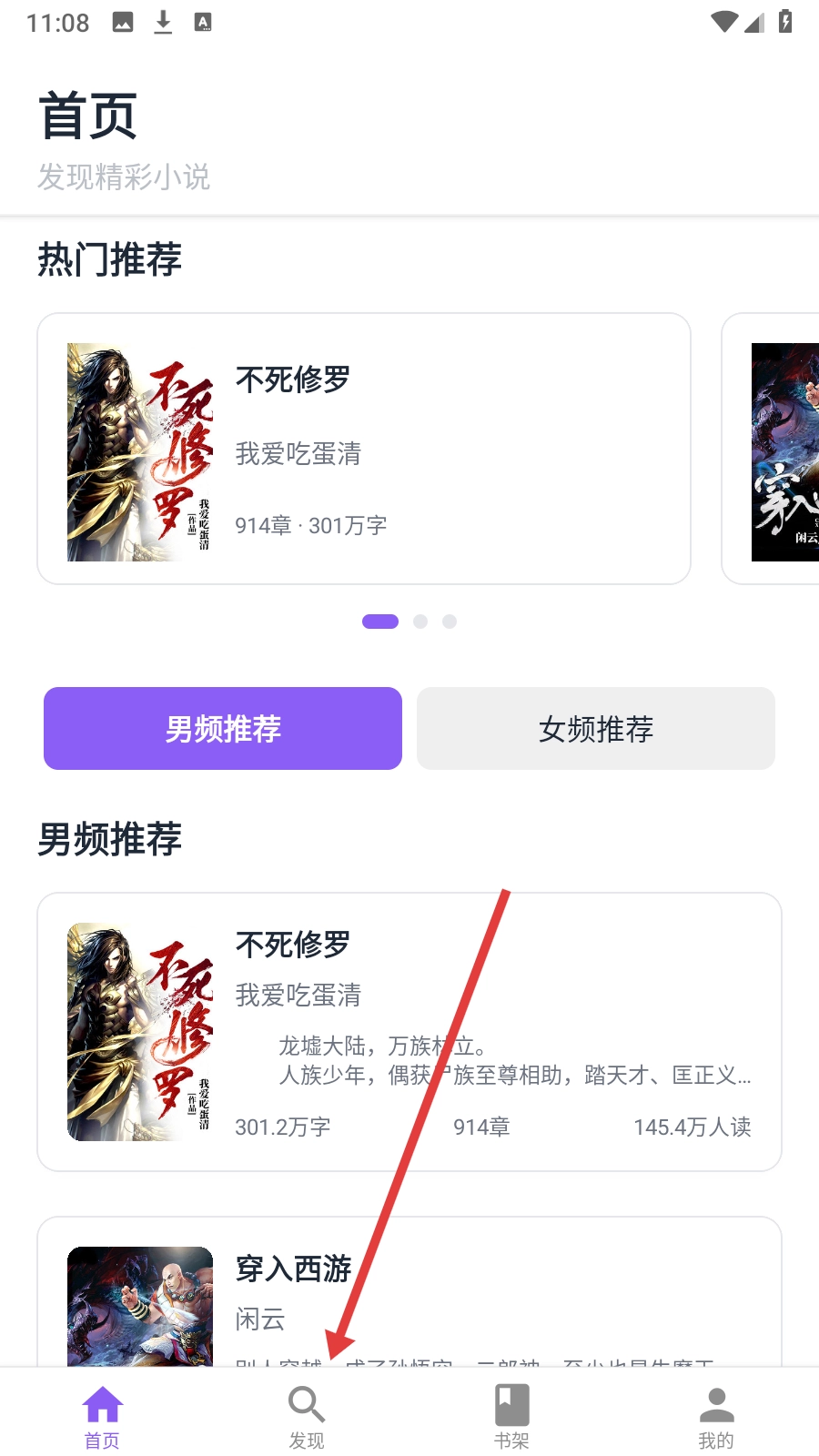 1、在首页点击【发现】,进入小说探索界面。