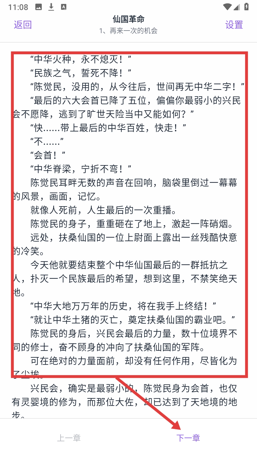 4、阅读完当前章后点击【下一章】,即可继续精彩阅读。