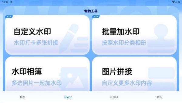 3、自定义页面提供了修图功能,涵盖拼接、批量加水印等功能。
