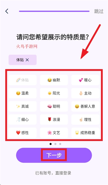 选择特质,点击下一步