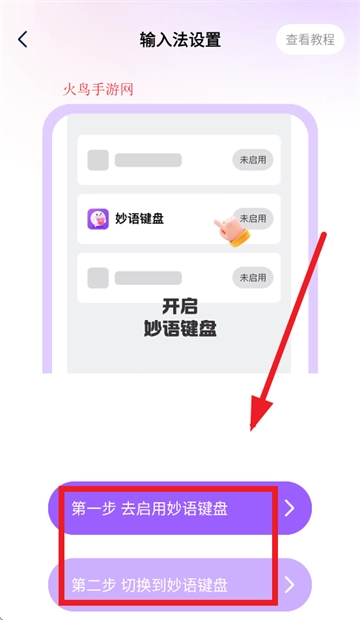 接下来进行输入法设置,首先启用妙语键盘,随后切换至妙语键盘就完成了。