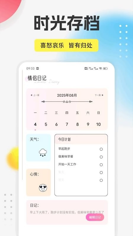 情侣日记功能超强大,随时随地都能添加记录,定格每一刻的美好画面,还能同步保存天气与心情。