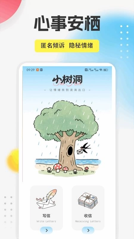 2、点击写信,就能以写信的方式倾诉烦恼,同时可开启匿名模式;
