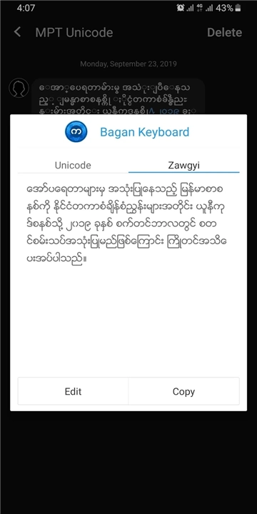 开发团队始终重视每一位用户的反馈与主张,致力于为您打造更优质的即时消息键入体验。并且,会依据您的需求,提供Zawgyi和Myanmar Unicode两种类型。蒲甘键盘堪称市场上最出色的缅甸Unicode键盘。我们同时支持缅甸Unicode和Zawgyi这两种键盘布局。