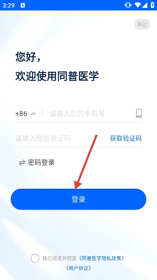 4、在登录页输入手机号与验证码,勾选协议,点击【登录】,完成沟通前身份认证。