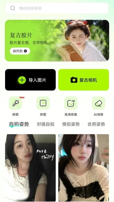 DZ复古相机app能满足用户多样化的拍照需求,借助这个平台,你可以留存美好回忆。而且,通过该平台,你能迅速查看各类拍照效果。平台所提供的拍照姿势大全极为丰富,用户得以体验不同姿势,进而拍摄出各种充满趣味与创意的照片。不仅如此,平台后续还会增添更多内容,助力你学习更多拍照知识!