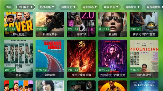 界面简洁直观,电视台直播,栏目点播,影视点播,随心选择。