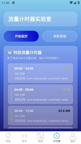 4、计时器,实时监控不同时段的流量使用情况,随时刷新,数据最新呈现。