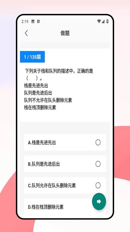 不仅如此,它还为用户准备了海量练习题,并配有详细的试题讲解,助力你高效掌握每一个知识点,让学习更具成效。正在备考的用户们,快来下载计算机一级考试题库免费版软件,一起开启学习之旅吧!
