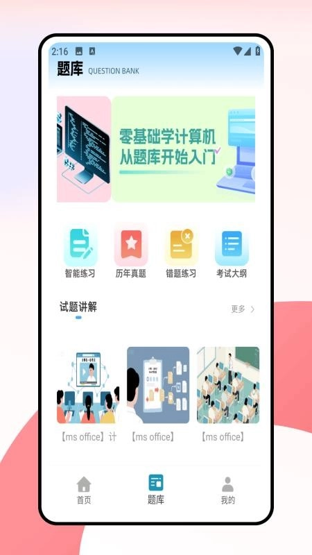1. 在计算机一级考试题库app的首页,你可以看到多种课程类型,能够自由挑选进行学习。
