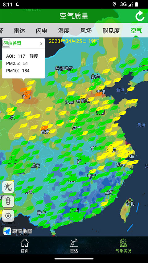 1. 打开app进入主页,在“雷达”栏目里点击播放按钮,就能实时接收最新的天气实况。