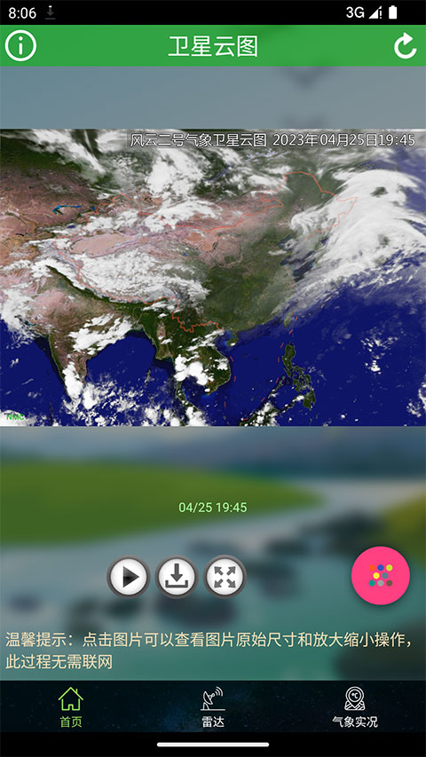 4、自动播放功能,动态看云层的发展形势。