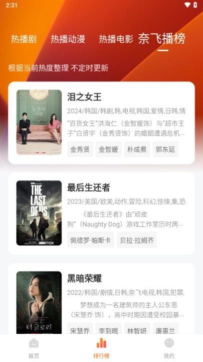 3、热门人气影片推荐:每日为您推荐最新、最热门的影视剧,一键即可点播观看。