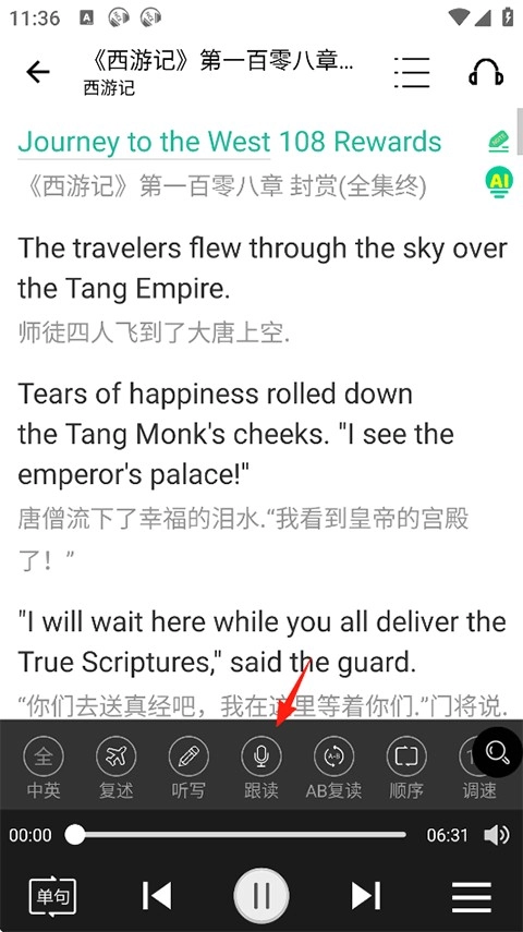 4、开始跟读,至少跟读两句及以上可合成录音。