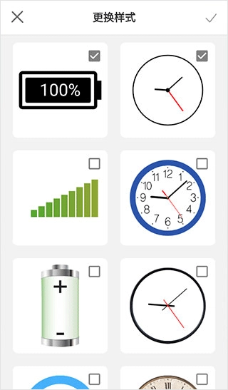 4、更换样式里面可以选择各种闹钟、电池以及表格等图标;