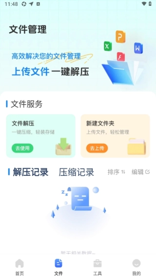 3、文件管理功能旨在助力用户高效处理文件一键解压问题。不仅如此,它还支持新建文件夹并进行压缩,以便于上传。同时,相关记录均可查看,用户能够快速定位所需内容。