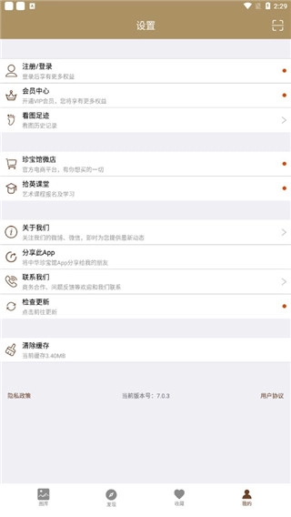 中华珍宝馆是一款线上文物展览观赏软件。借助这款软件,用户能随时详细查看软件内的文物内容,每一件文物下方都配有更为详尽的介绍,助你告别走马观花式的浏览方式,可查看的内容极为丰富。中华珍宝馆收录了海量文物作品,能让你在线上拥有优质的展览参观体验。